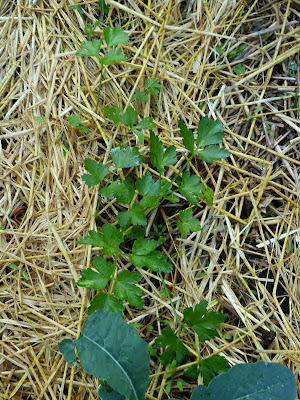 I also can't really choose with any pinpoint accuracy where these plants will show up. True confession -- I may see parsley all over as I may have flailed some seedhead branches all around while singing a few weeks ago. . . "Parsley, sage, rosemary and thyyyyyyyyymmeee." Still, it's a generalized planting technique.